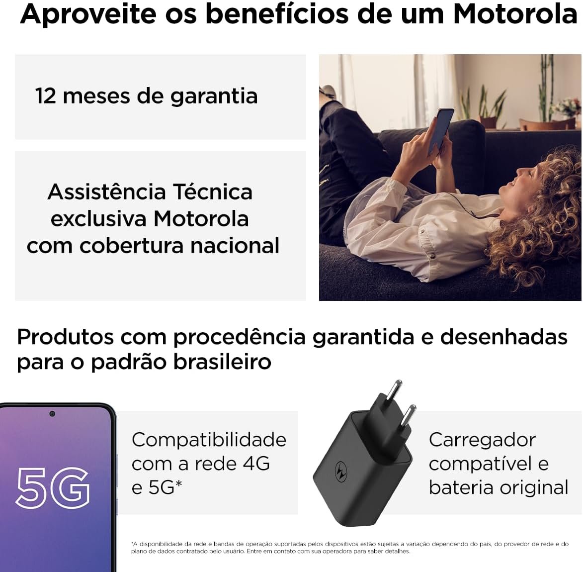 A bateria de 5.000 mAh garante autonomia para até dois dias de uso moderado, e com o carregamento rápido TurboPower 30W, é possível recuperar horas de energia em poucos minutos. Ideal para quem não quer se preocupar com tomadas durante o dia.